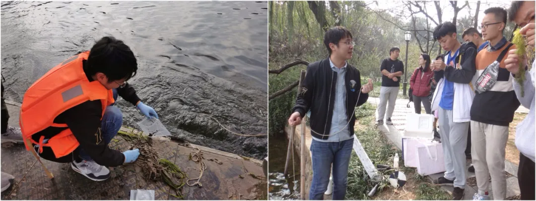 會議結(jié)束,由實驗室負責人唐坦先生帶領(lǐng)同學(xué)們到莫愁湖景區(qū),進行實地勘測水樣操作演練,進一步加強理論知識,為同學(xué)們未來走向職場開啟新篇章。