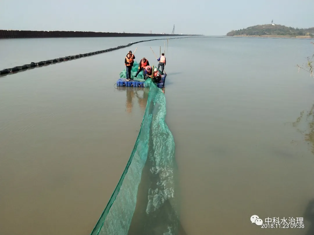 2018年7月,南京中科水治理股份有限公司再次中標(biāo)太湖水域人工種植水生植物試驗項目。為更好地推動“梅梁湖項目”,貫徹和落實上級領(lǐng)導(dǎo)對本項目的指示,中科水治理以太湖沿岸線為基礎(chǔ),以圍隔為隔水材料,將太湖水域隔離出封閉水域6萬㎡,并以仿生消浪、漁籪、生態(tài)網(wǎng)膜工程為輔助措施,進(jìn)行太湖水域人工種植水生植物的試驗項目。