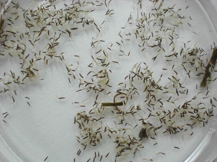 萌發(fā)率為 40% ~ 69%,天然土效果最好。 萌芽率受溫度、種子保存時間和光照的影響,不受水質(zhì)的影響。