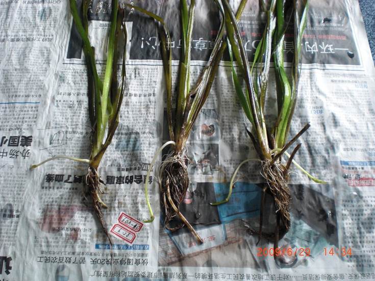 2、低氧對苦草根系的影響顯著,表現(xiàn)為根須變細(xì)且數(shù)量增加,根系活力明顯下降。