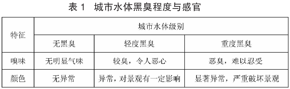 城市水體根據(jù)感官的不同分為無黑臭、輕度黑臭和重度黑臭三類。
