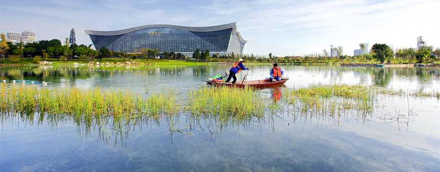 錦城湖3#、4#湖生態(tài)系統(tǒng)構(gòu)建工程自2013年3月25日開(kāi)工至5月底主要施工任務(wù)完成。水體透明度達(dá)到2米,部分區(qū)域清澈見(jiàn)底,從6月1日開(kāi)始,工程進(jìn)入優(yōu)化調(diào)整階段。2014年4月通過(guò)竣工驗(yàn)收,錦城湖工程(3#、4#湖)清水型生態(tài)系統(tǒng)構(gòu)建完工后,水體清澈,水質(zhì)優(yōu)于《地表水環(huán)境質(zhì)量標(biāo)準(zhǔn)》GB3838-2002 Ⅳ類(lèi)(TP<0.1mg/L,TN<0.5mg/L),水體生物多樣性高,沉水植物覆蓋度達(dá)到60%以上,有效抑制了水體富營(yíng)養(yǎng)化趨勢(shì),水體透明度達(dá)到2m,部分地區(qū)清澈見(jiàn)底,水體景觀性好。